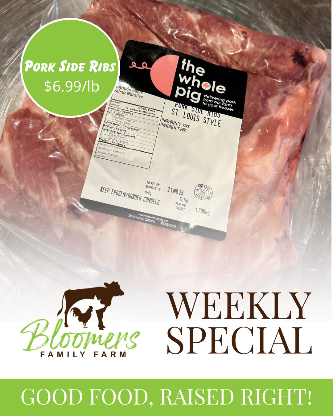 Bloomers Family Farm sources all of our pork products directly through our butcher.